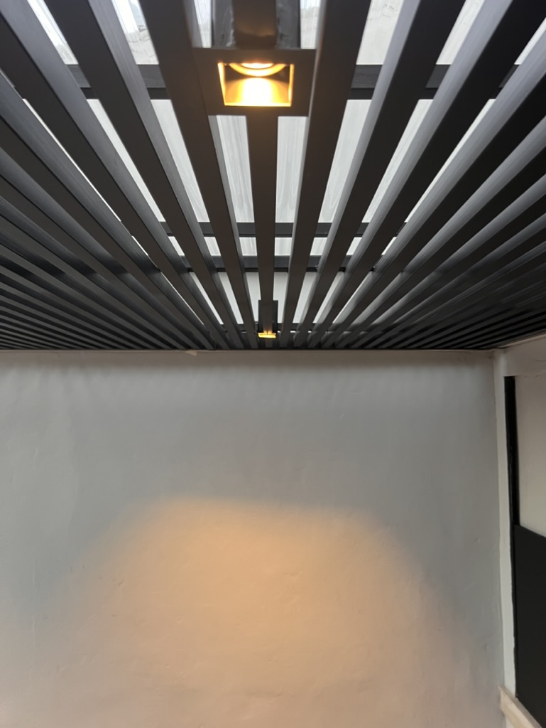 En cuanto al diseño, nos inspiramos en las líneas existentes de la edificación para mantener la continuidad estética. La pergola se integra de manera armoniosa con la cubierta translúcida y una cuidadosa zinguería oculta, evitando cualquier obstrucción visual.