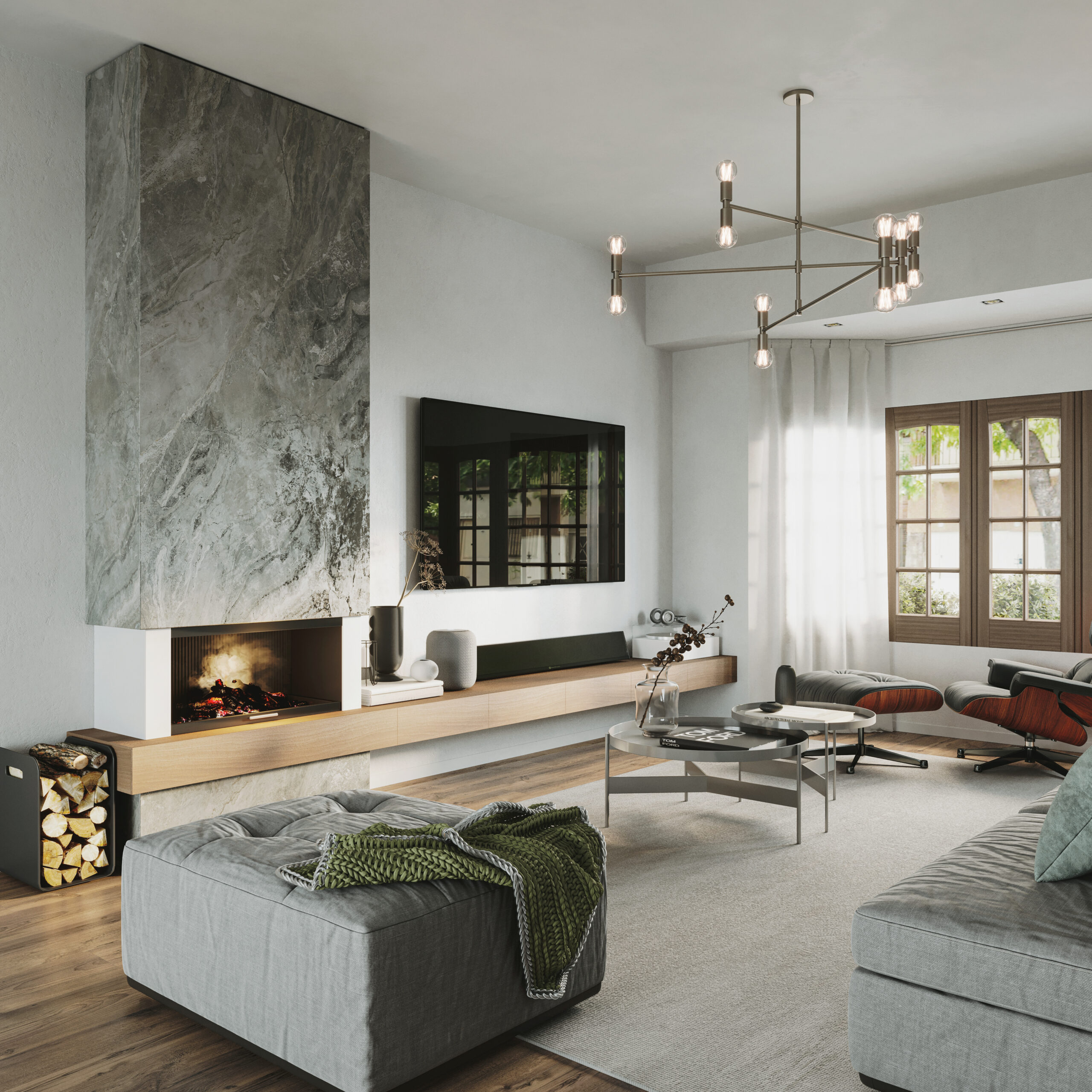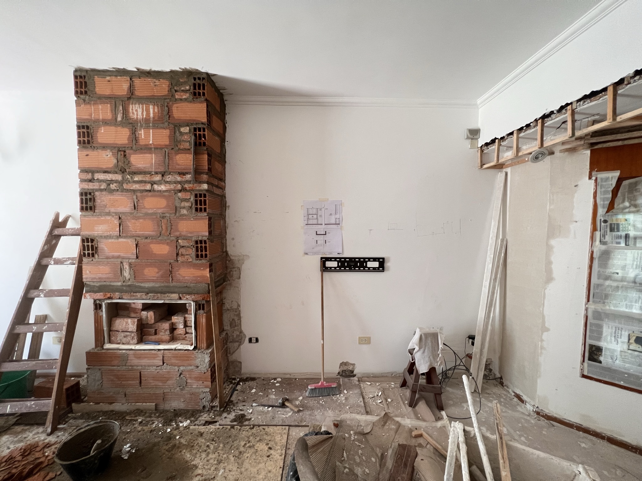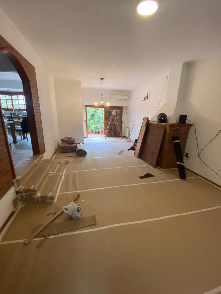 En este proyecto de refacción del living comedor, la premisa principal fue modernizar el espacio y darle un toque minimalista. Para lograrlo, se decidió eliminar el ladrillo visto de la chimenea, que le daba un aspecto más tradicional al ambiente. En su lugar, se optó por revestir el hogar con una piedra natural, que brinda una apariencia más moderna y elegante, además de fortalecer los materiales naturales, entre ellos hierro, madera, piedra.
