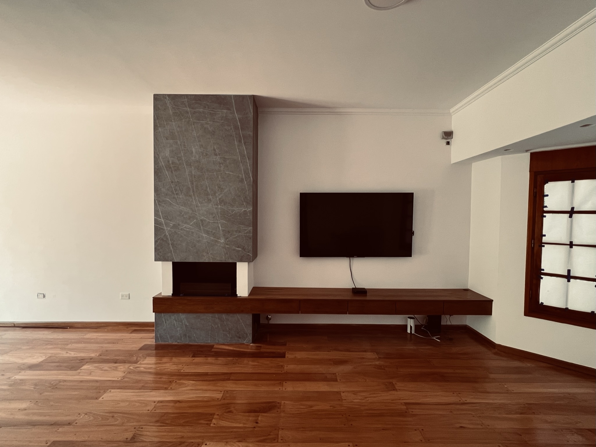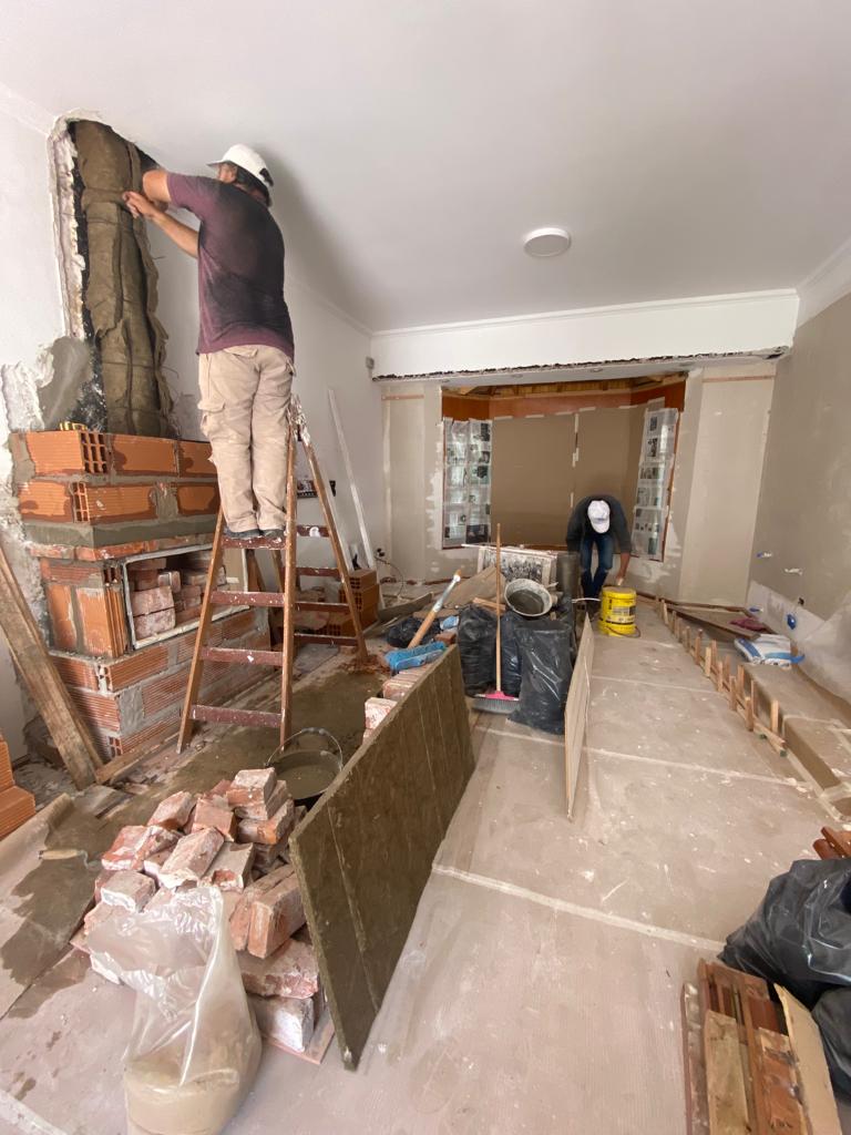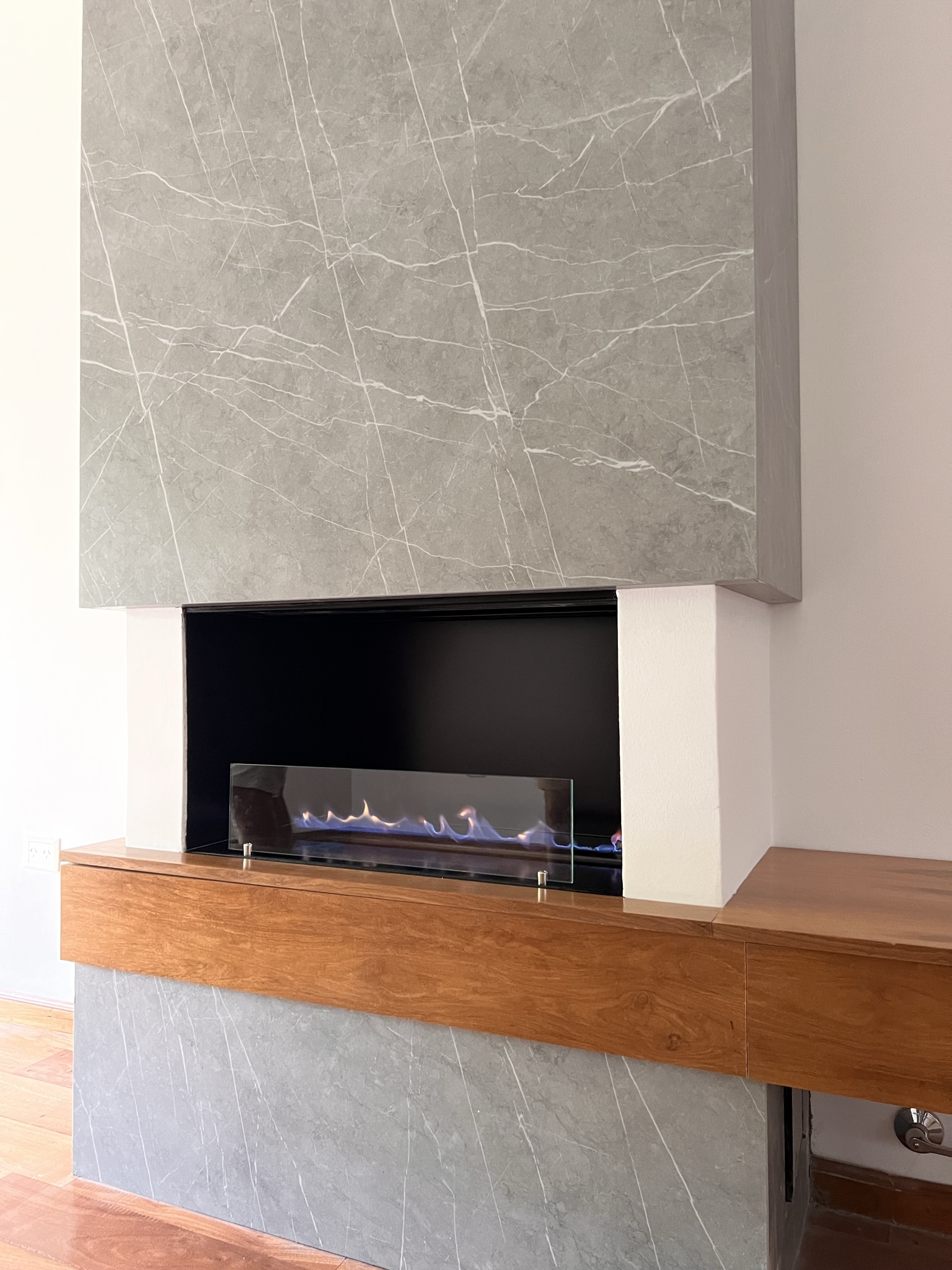 En este proyecto de refacción del living comedor, la premisa principal fue modernizar el espacio y darle un toque minimalista. Para lograrlo, se decidió eliminar el ladrillo visto de la chimenea, que le daba un aspecto más tradicional al ambiente. En su lugar, se optó por revestir el hogar con una piedra natural, que brinda una apariencia más moderna y elegante, además de fortalecer los materiales naturales, entre ellos hierro, madera, piedra.