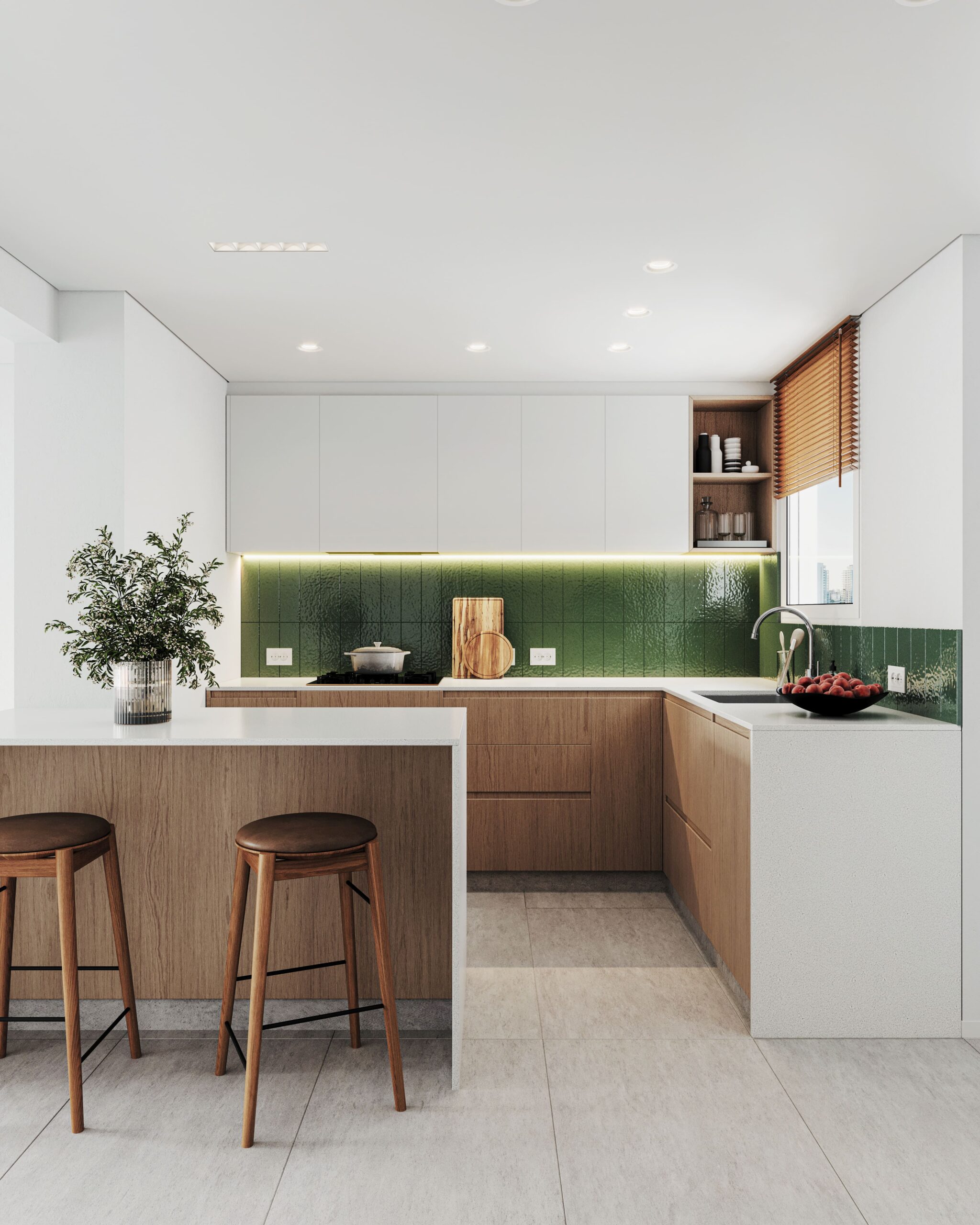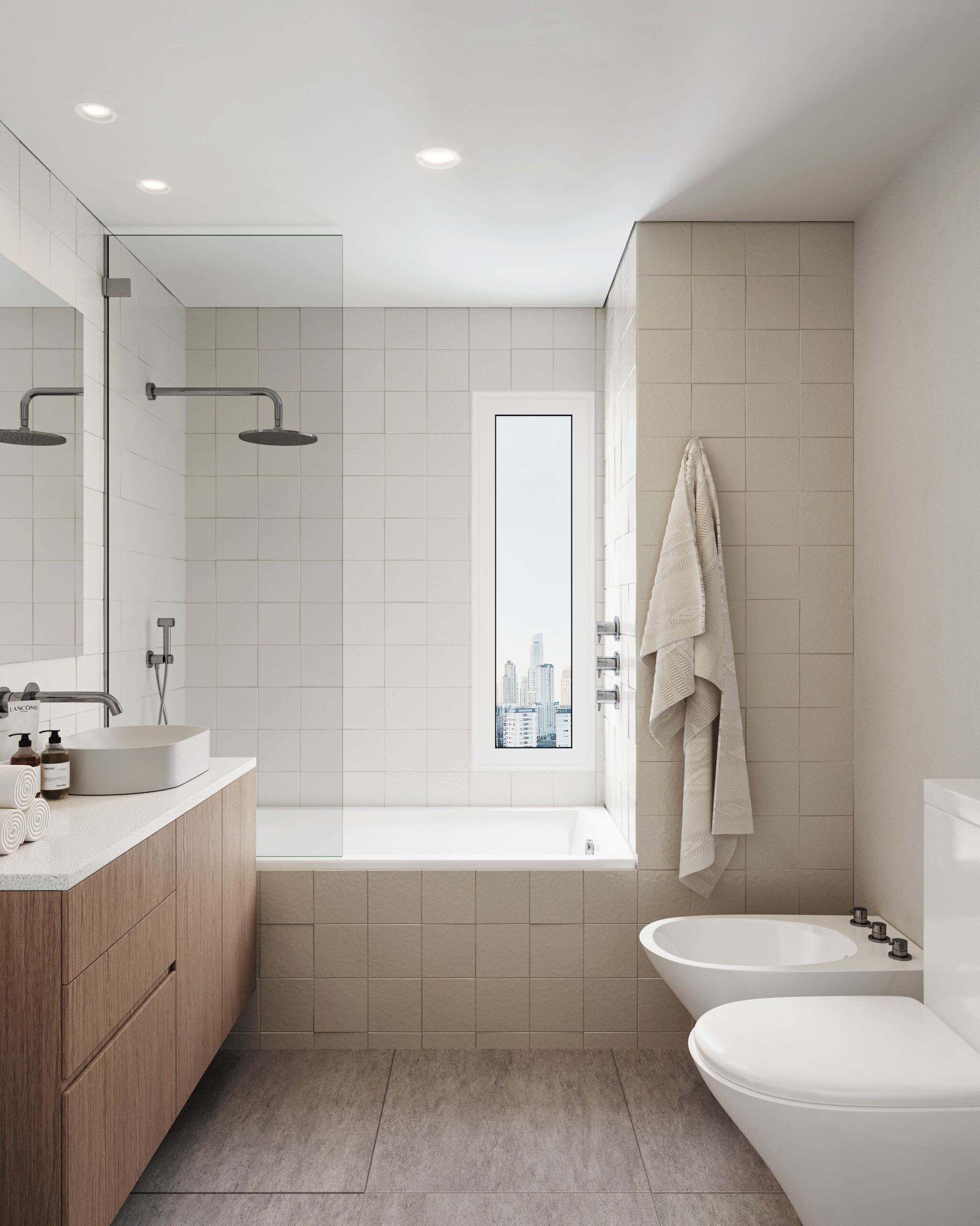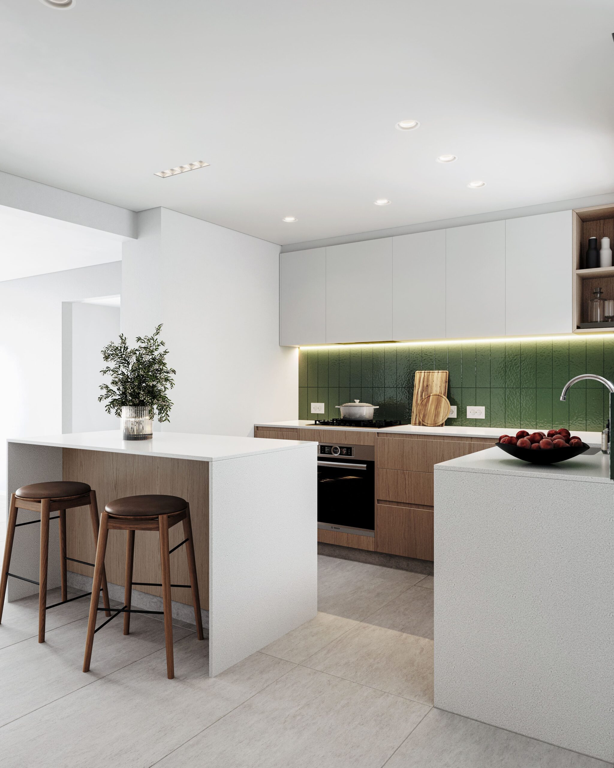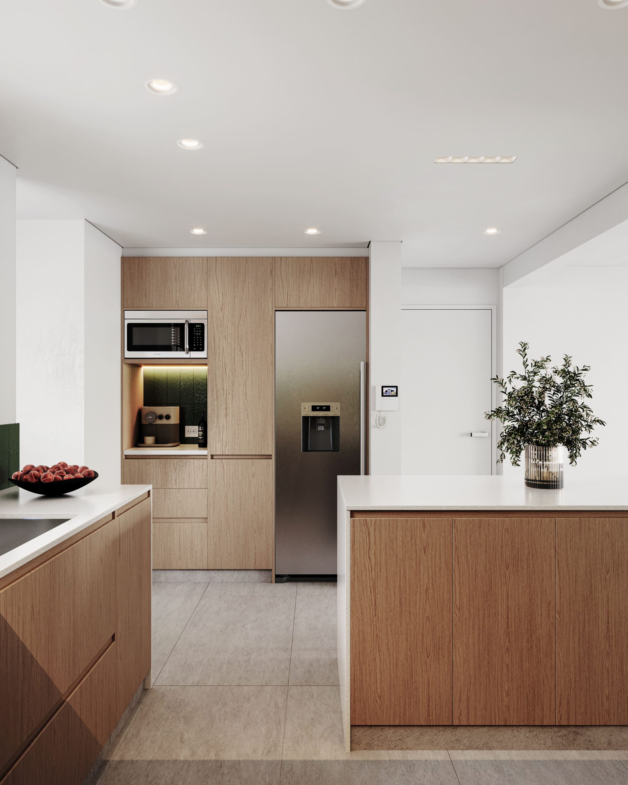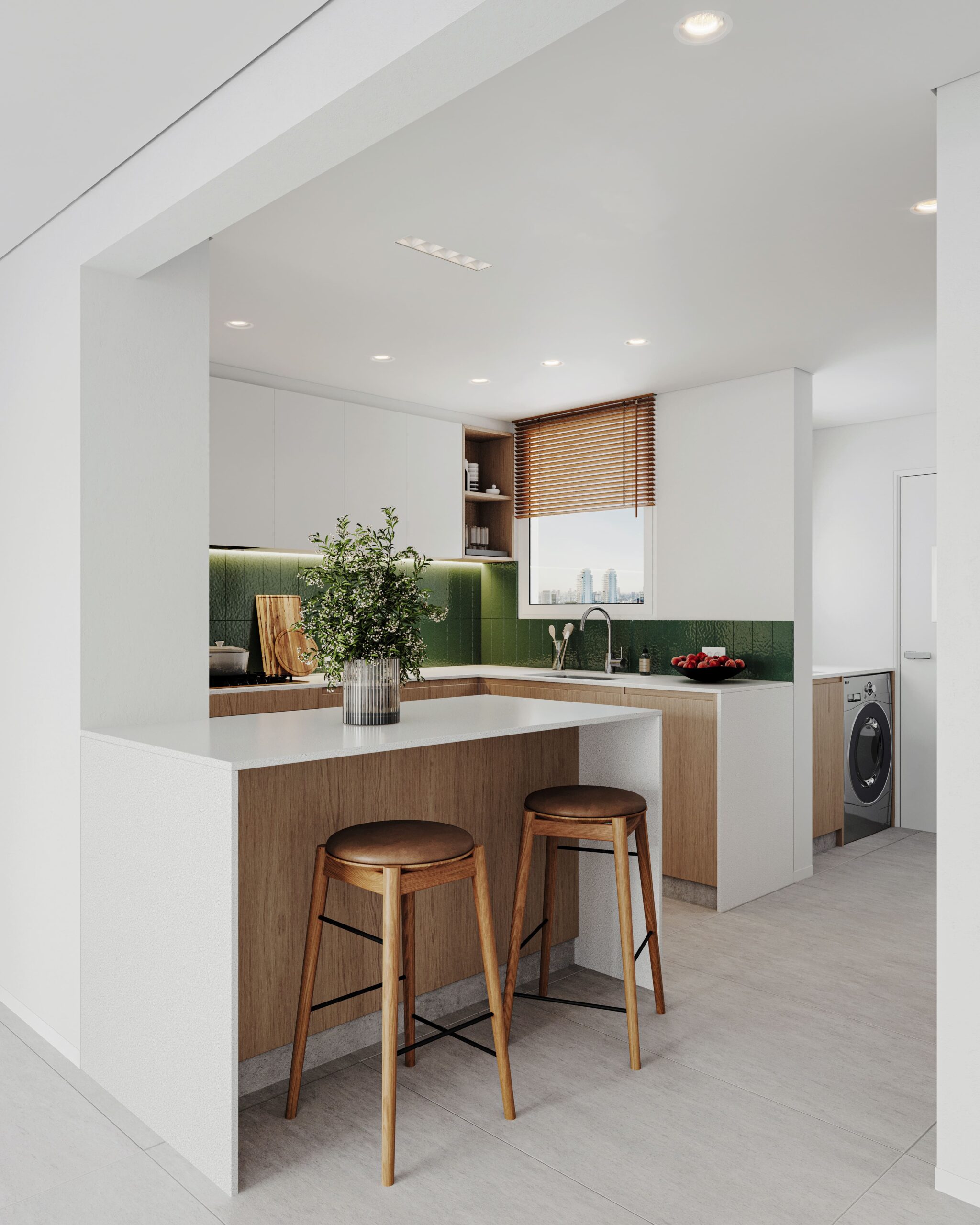 Nuestra intervención consistió en una renovación completa del baño y la cocina, así como en la actualización de todas las carpinterías de la unidad, adaptando los espacios a las necesidades contemporáneas. Un desafío clave fue desplazar la caldera y el termotanque del living comedor a la habitación de servicio, permitiendo así una integración fluida entre la cocina y el living comedor, y maximizando el espacio con la inclusión de una isla central. Además, se cambió la totalidad del piso por un revestimiento uniforme, otorgando mayor libertad espacial y cohesión visual a toda la unidad.