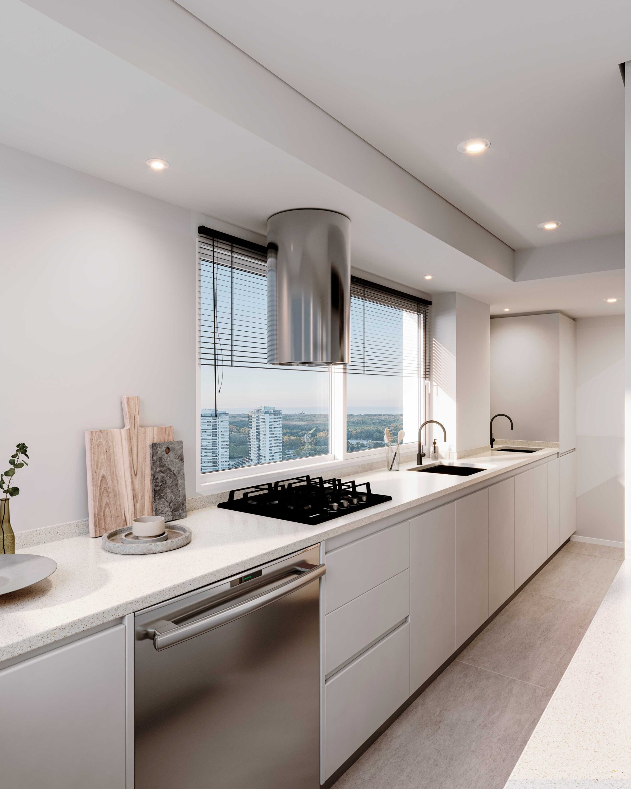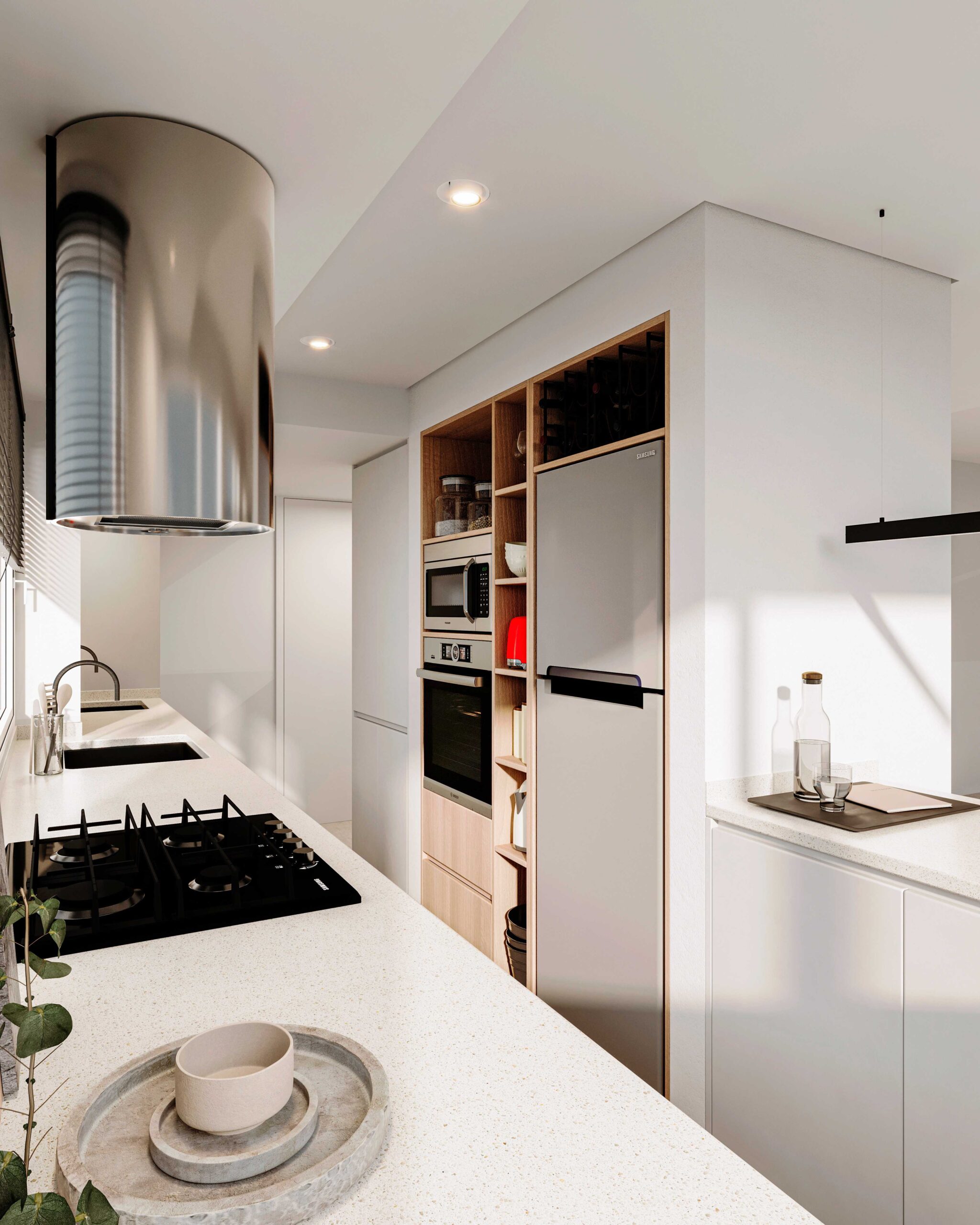 Ubicado en una torre excepcional con vistas panorámicas a la ciudad, nuestro último proyecto de remodelación fue un departamento en el dinámico barrio de Núñez. La motivación principal detrás de la reestructuración de la cocina fue modernizarla y hacerla más funcional, ya que, aunque cumplía con las necesidades básicas, carecía de la calidez necesaria al estar integrada al ambiente del living comedor.